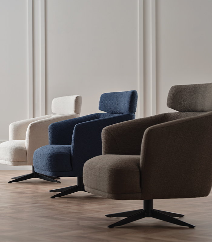 • Headboard application and two different metal swivel leg alternatives as black/anthracite for armchairs